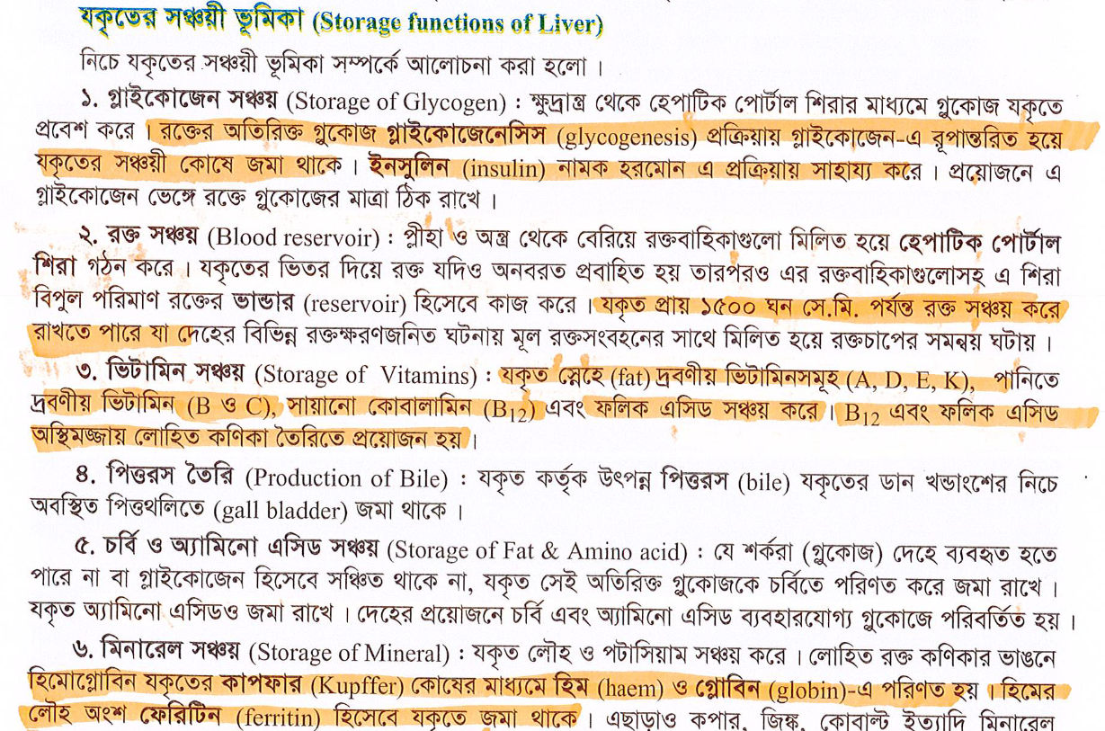 Correct Answer is: যকৃতে