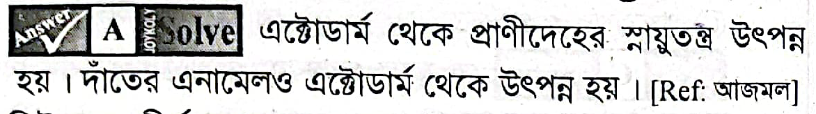 পূর্ণাঙ্গ প্রাণীদেহের স্নায়ুতন্ত্র কোন ভ্রূণীয় স্তর থেকে উৎপন্ন হয়?