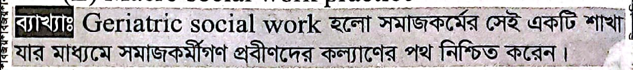 প্রবীণদের কল্যাণে সমাজকর্ম অনুশীলনকে পেশাগত পরিভাষায় বলা হয়-