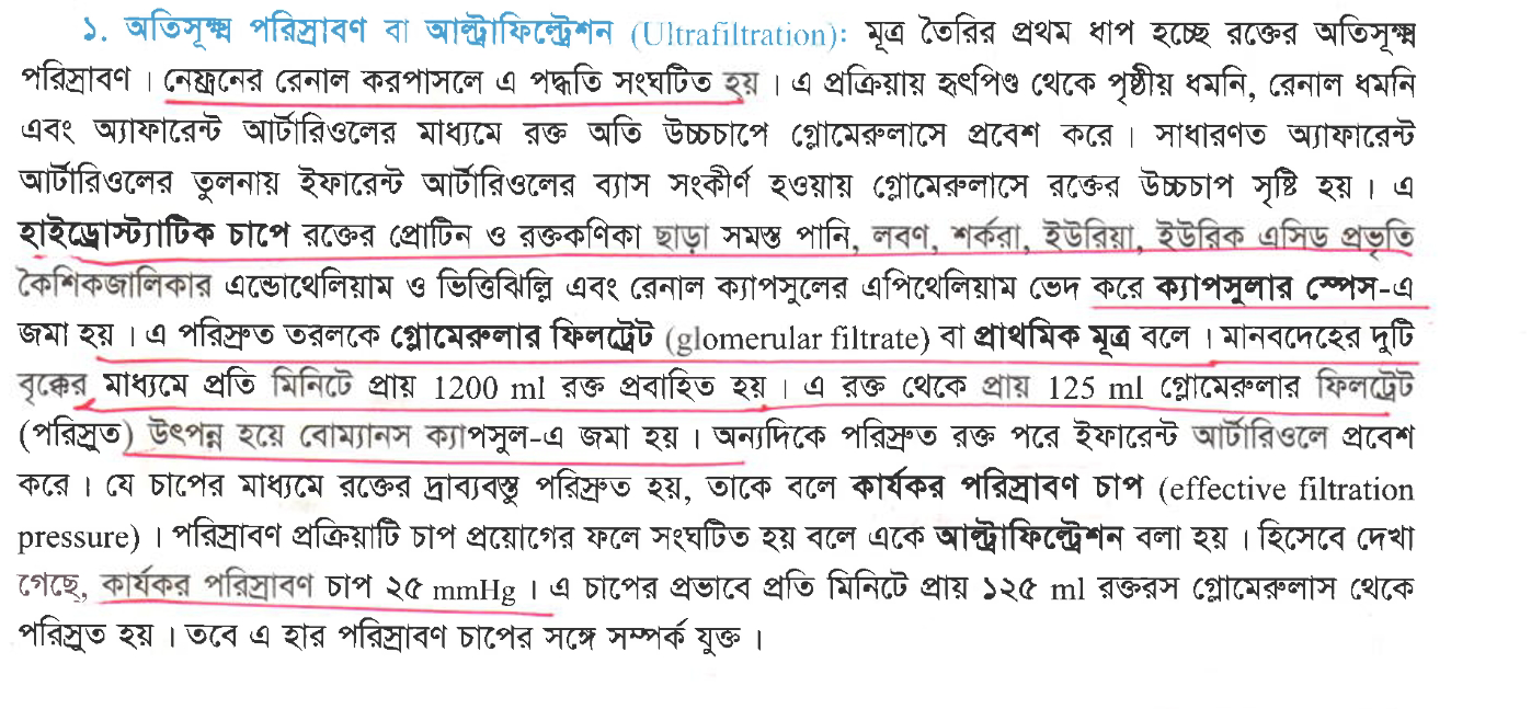 প্রশ্ন-১২আল্ট্রাফিল্ট্রেশনের ক্ষেত্রে যে যুক্তিগুলো সঠিক-মূত্র তৈরীর ১ম ধাপ ইউরিয়া প্লাজমায় অবস্থান করে রক্ত অতি উচ্চচাপে গ্লোমেরুলাসে প্রবেশ করে নিচের কোনটি সঠিক ?