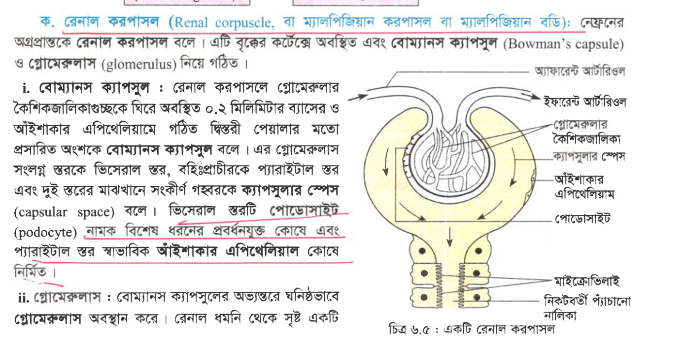 প্রশ্ন-৫৬A` চিহ্নিত অংশটি তৈরিতে অংশগ্রহণকারী উপাদান হলো-পোডোসাইট কোষক্যাপসুলার স্পেসগ্লোমেরুলার এন্ডোথেলিয়ামনিচের কোনটি সঠিক?