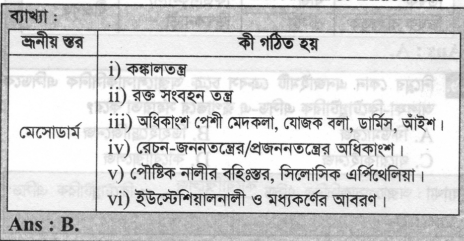 প্রাণিদেহের কঙ্কালতন্ত্র কোন ভ্রূণীয় স্তর হতে গঠিত হয়?