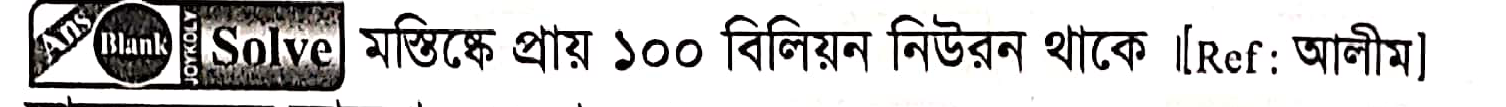 প্রাপ্তবয়স্ক মানুষের মস্তিষ্কে নিউরনের সংখ্যা-