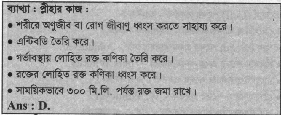 প্লীহার কাজ কি?