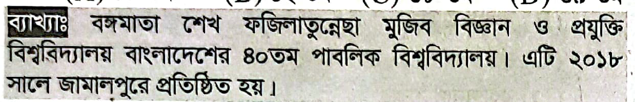 বঙ্গমাতা শেখ ফজিলাতুন্নেছা মুজিব বিজ্ঞান ও প্রযুক্তি বিশ্ববিদ্যালয় বাংলাদেশের কততম পাবলিক বিশ্ববিদ্যালয়?