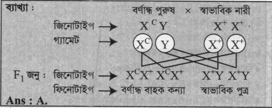 বর্ণান্ধ পুরুষ ও স্বাভাবিক দৃষ্টি সম্পন্ন নারীর মধ্যে বিয়ে হলে F1 জনুতে কোনটি হবে না?