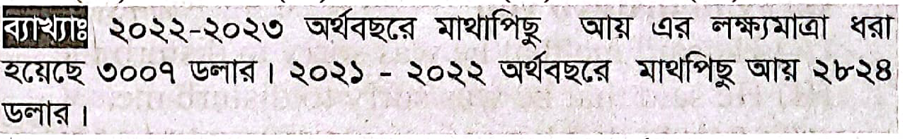 বর্তমানে বাংলাদেশের মাথাপিছু জাতীয় আয় কত মার্কিন ডলার?