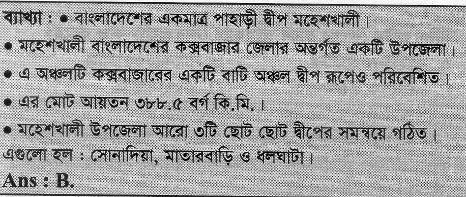 Correct Answer is: মহেশখালী