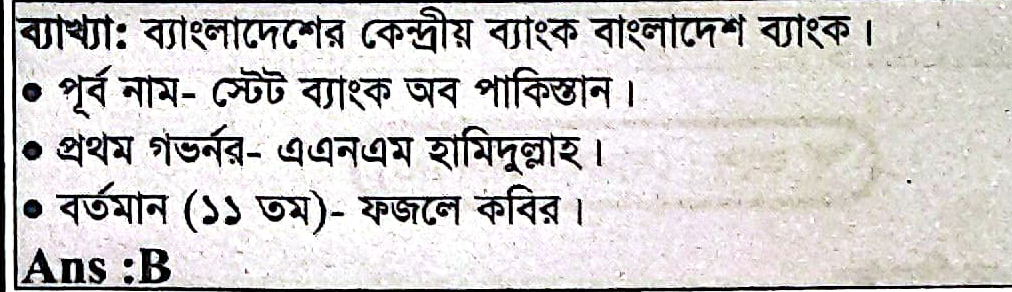 Correct Answer is: বাংলাদেশ ব্যাংক