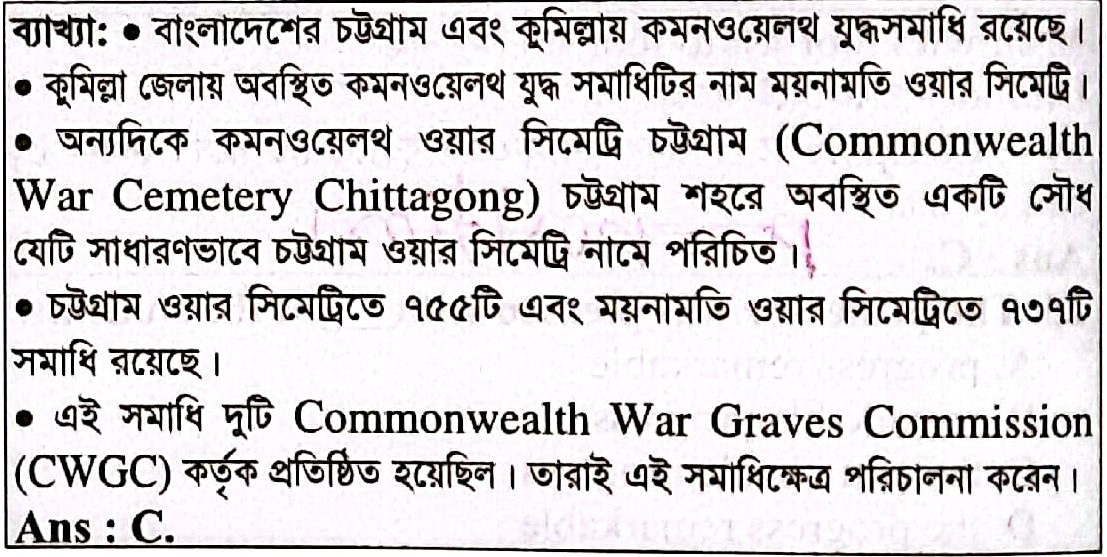 বাংলাদেশের কোথায় কমনওয়েলথ যুদ্ধসমাধি আছে?