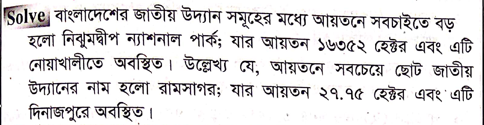 বাংলাদেশের জাতীয় উদ্যান সমূহের মধ্যে আয়তনে সবচেয়ে বড় কোনটি?