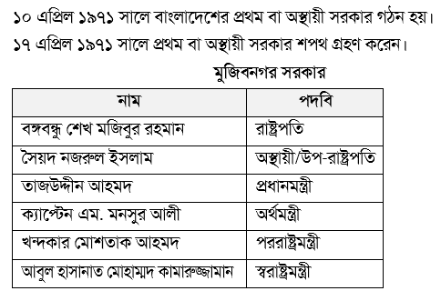বাংলাদেশের প্রথম অস্থায়ী প্রেসিডেন্ট কে ছিলেন?