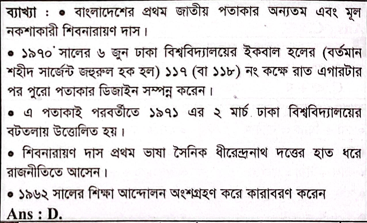 Correct Answer is: শিব নারায়ণ দাস