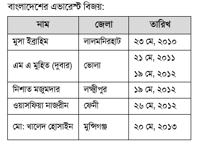 বাংলাদেশের মুসা ইব্রাহীম কত তারিখে পৃথিবীর সর্বোচ্চ পর্বত শৃঙ্গ এভারেস্টের শিখরে পা রাখেন?