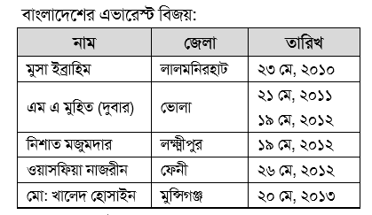 বাংলাদেশের মুসা ইব্রাহীম কত তারিখে পৃথিবীর সর্বোচ্চ পর্বতশৃঙ্গ এভারেস্টের শিখরে পা রাখেন?