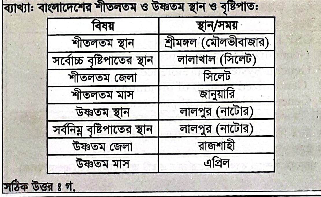 বাংলাদেশের শীতলতম স্থানের নাম কি?