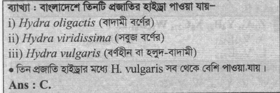 বাংলাদেশে হাইড্রা এর কোন প্রজাতি বেশি পাওয়া যায়?