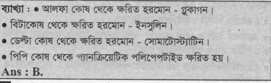 বিটা কোষ থেকে ক্ষরিত হরমোন কোনটি?