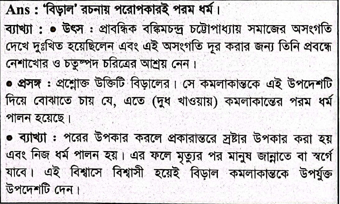 বিড়াল` রচনায় পরম ধর্ম কী?