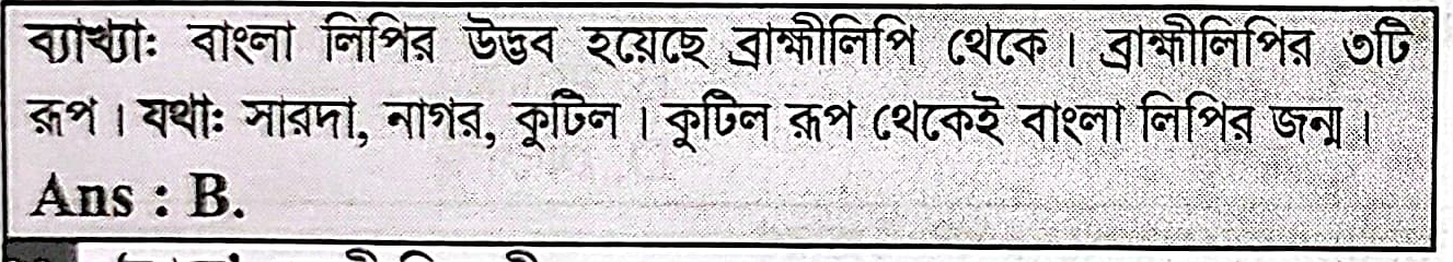 বাংলা লিপির উৎস কোনটি? Option A: চীনা , Option B: খরোষ্ঠী , Option C: ব্রাহ্মী, Option D: সেমেটিক, correct answer is: ব্রাহ্মী