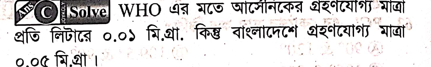 বিশ্বস্বাস্থ্য সংস্থা কতৃক নির্ধারিত আর্সেনিকের নিরাপদ মাত্রা (mg/L) কত?