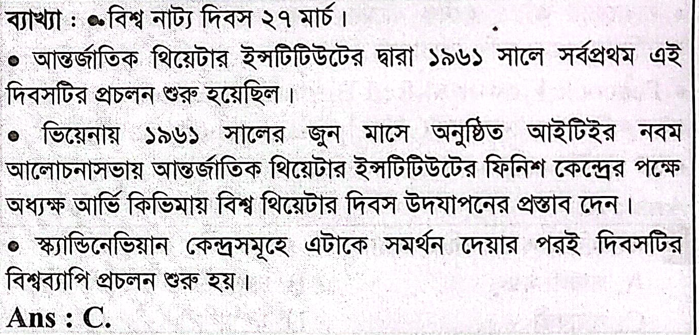 Correct Answer is: ২৭ মার্চ