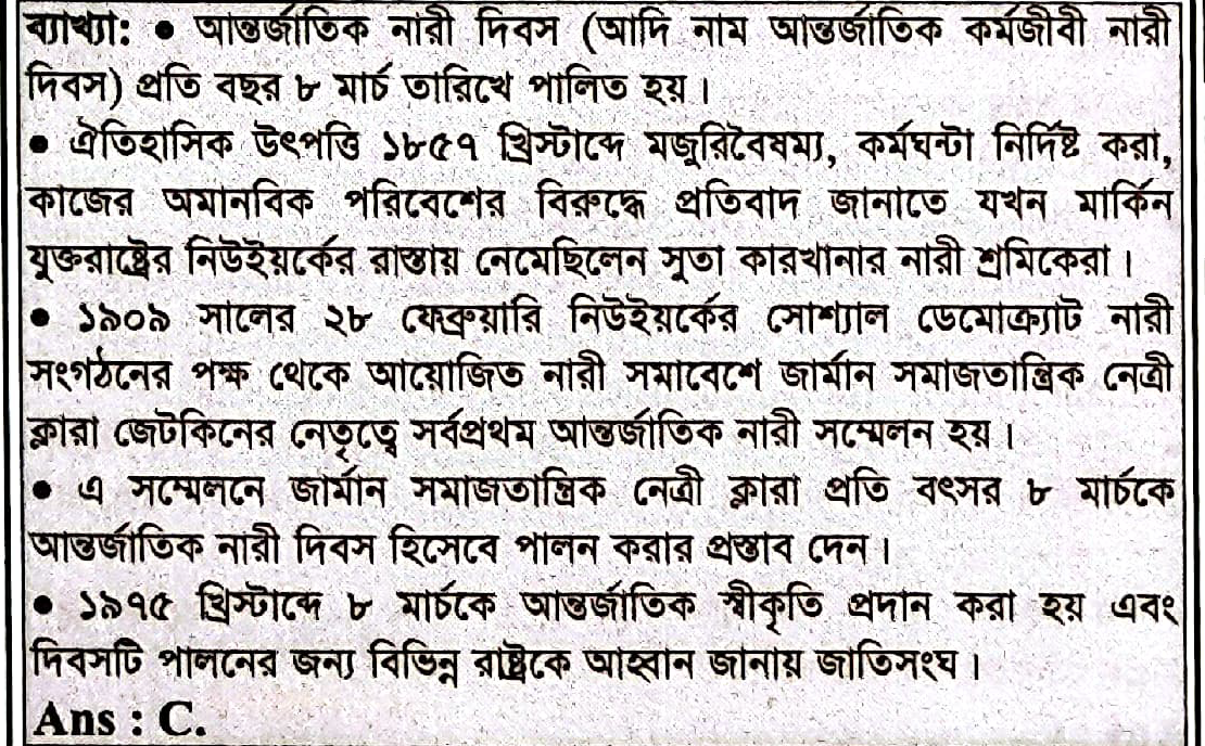 Correct Answer is: ৮ মার্চ