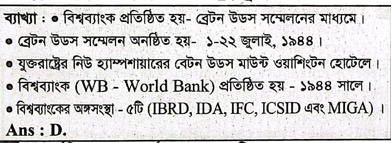 বিশ্ব ব্যাংক প্রতিষ্ঠা হয় কোন সম্মেলনের মাধ্যমে ?