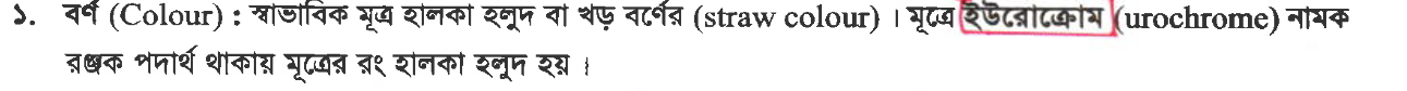 (বোর্ড ক)প্রশ্ন-১৯মূত্রের রং খড় বর্ণ হওয়ার জন্য দায়ী বস্তু হলো—