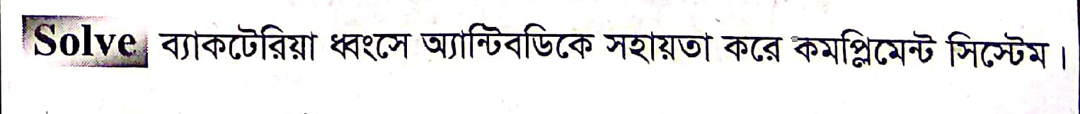 ব্যাকটেরিয়া ধ্বংসে অ্যান্টিবডিকে সহায়তা করে কোনটি?