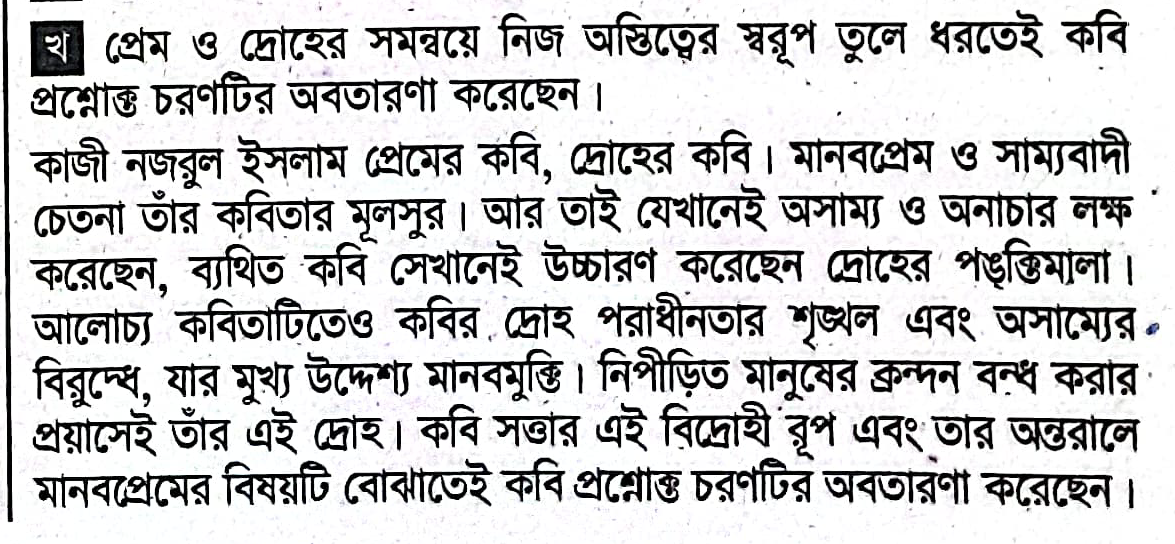 ব্যাখ্যা করো: `মম এক হাতে বাঁকা বাঁশের বাঁশরী আর হাতে রণ-তূর্য।