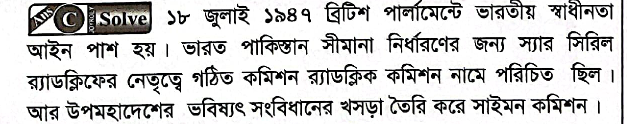 ভারত বিভক্তির সময় ১৯৪৭ সালের সীমানা নির্ধারণ কমিশন কি নামে পরিচিত ছিল ?