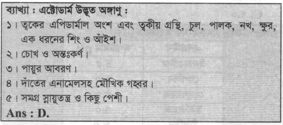 ভ্রূণ পরিস্ফুটনের সময় এক্টোডার্ম থেকে উৎপন্ন হয় কোনটি?