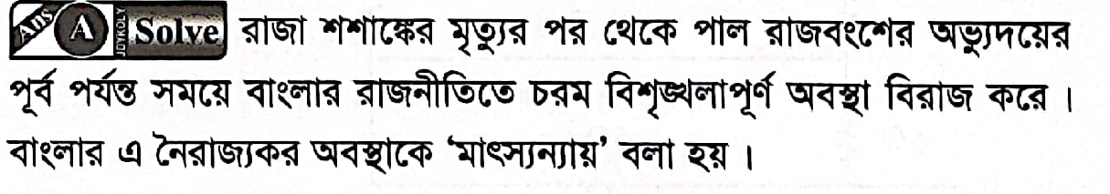 Correct Answer is: সপ্তম অষ্টম শতকে বাংলায় নেমে আসা অরাজকতাপূর্ণ অবস্থাকে