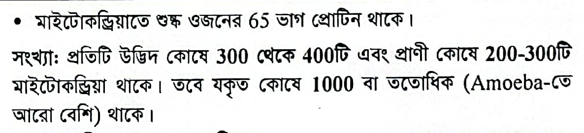 মাইটোকন্ড্রিয়াতে শতকরা কতভাগ প্রোটিন থাকে?