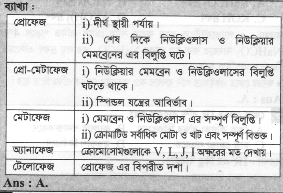 মাইটোসিসের কোন ধাপে নিউক্লিয়ার মেমব্রেন ও নিউক্লিওলাসের পূর্ণ বিলুপ্তি ঘটে?