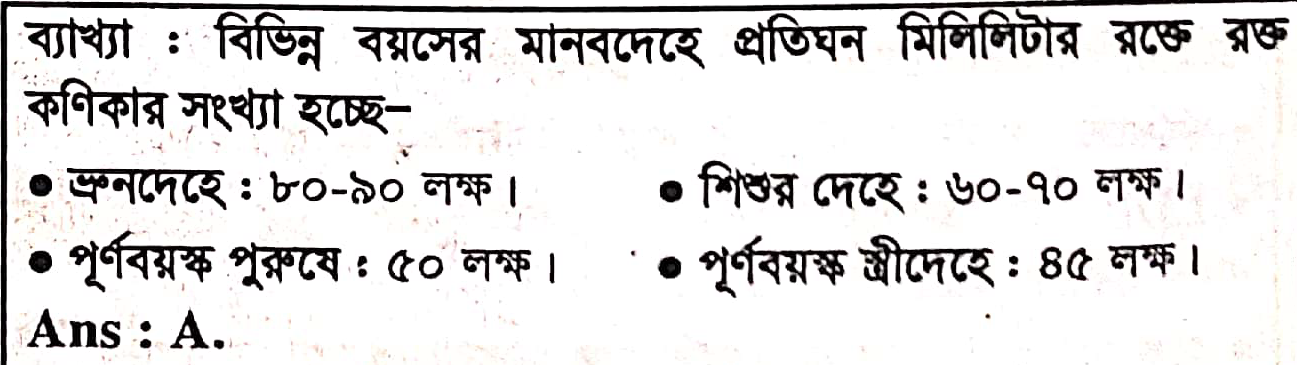 মানবদেহে কোন বয়সে রক্ত কণিকার সংখ্যা সবচেয়ে বেশি থাকে?