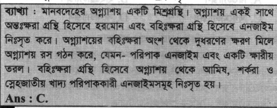 Correct Answer is: অগ্ন্যাশয়