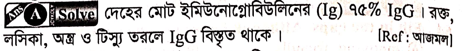মানব রক্তকণিকায় কোন অ্যান্টিবডিটি বেশি পরিমাণে পাওয়া যায়?