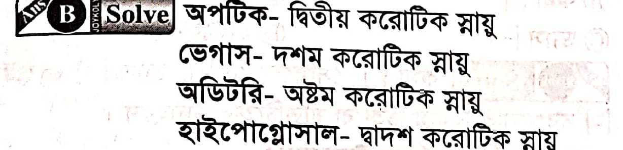 মানুষের দশম করােটিকা স্নায়ুর নাম কি?