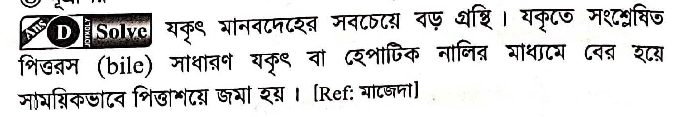 মানুষের পিত্তরস ক্ষরিত হয় কোনটি থেকে?