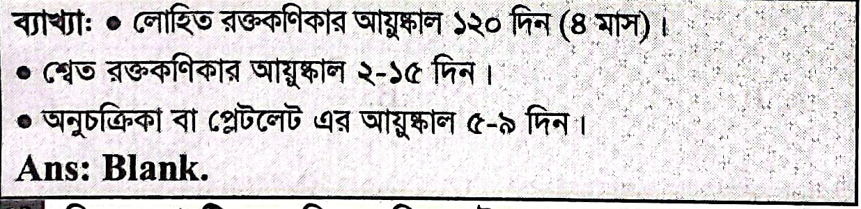 মানুষের রক্তের অনুচক্রিকার আয়ুষ্কাল কত দিন?