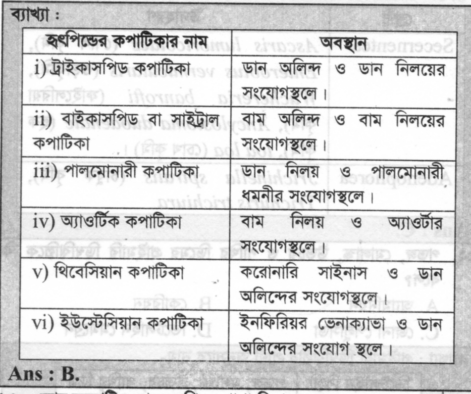 মানুষের হৃদপিণ্ডের বাম অলিন্দ ও বাম নিলয়ের সংযোগস্থলের কপাটিকার নাম কি?