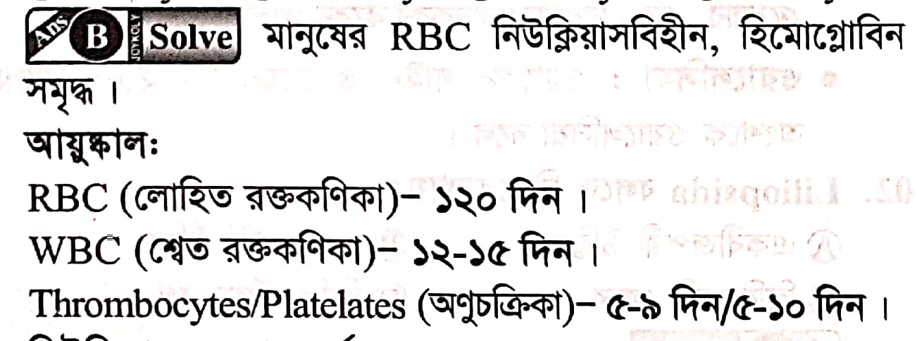 মানুষের RBC এর গড় আয়ুস্কাল হচ্ছে-