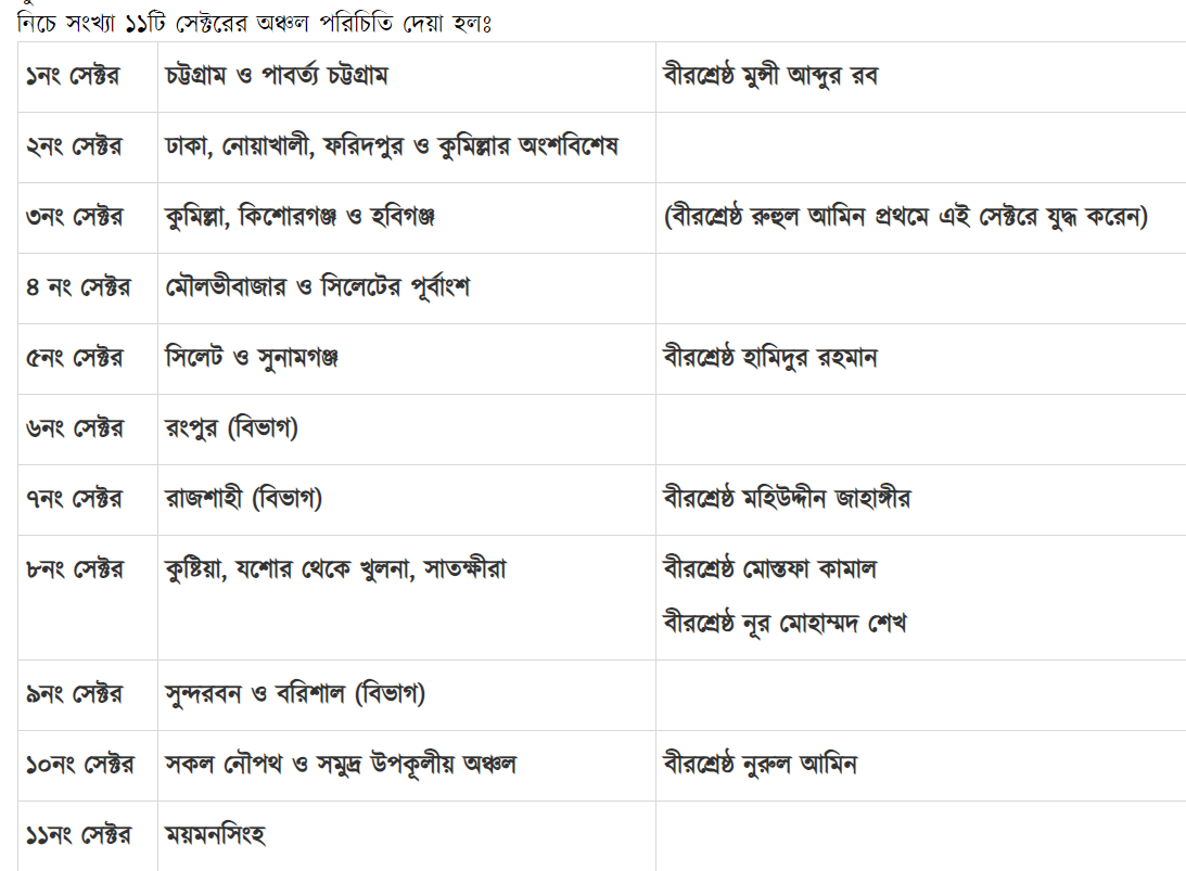 মুক্তিযুদ্ধের সময় ১০ নং সেক্টর কোনটা ছিল?