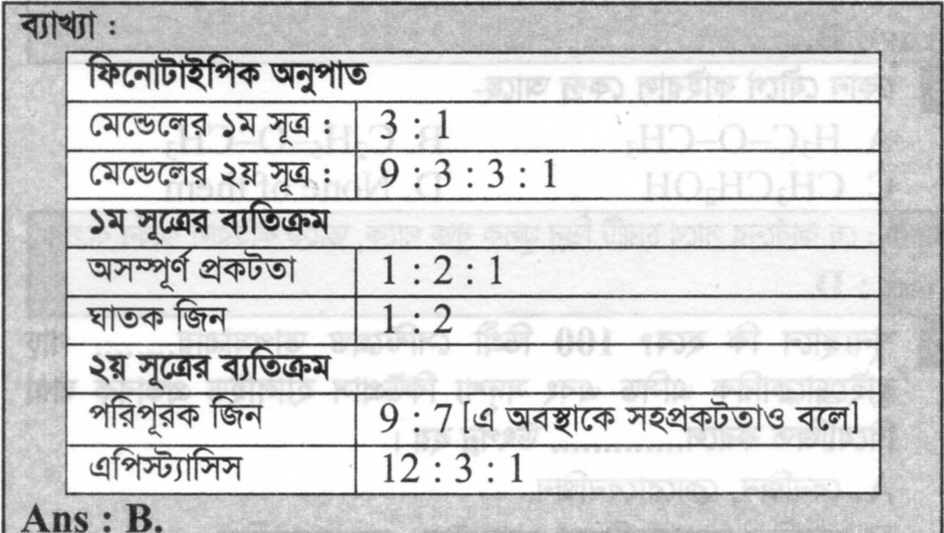 মেন্ডেলের প্রথম সূত্রের ফিনোটাইপিক ব্যতিক্রম নয় কোনটি?