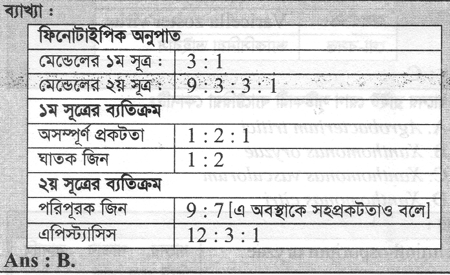 মেন্ডেলের ২য় সূত্রের ব্যতিক্রম কোনটি?