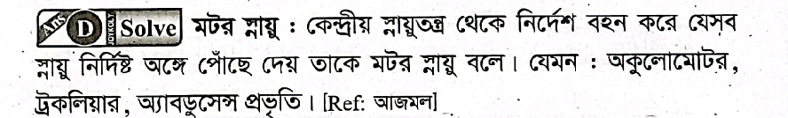 মোটর স্নায়ুর উদাহরণ কোনটি?