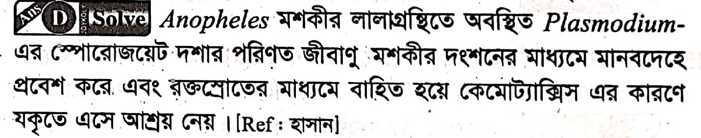 ম্যালেরিয়ার জীবাণু মানবদেহে প্রবেশের পর প্রথম কোথায় আশ্রয় নেয়?