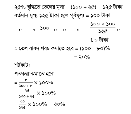 যদি তেলের মূল্য ২৫% বৃদ্ধি পায়, তবে তেলের ব্যবহার শতকরা কত কমালে তেল বাবদ খরচ বৃদ্ধি পাবে না?